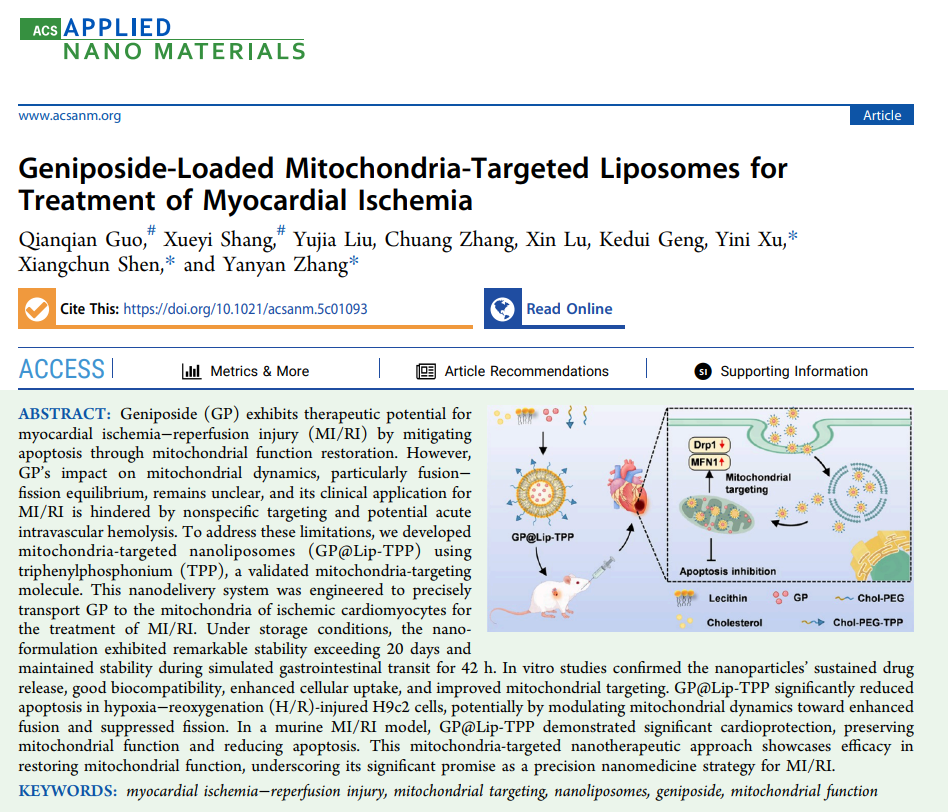 Title: Geniposide-Loaded Mitochondria-Targeted Liposomes for Treatment of Myocardial Ischemia