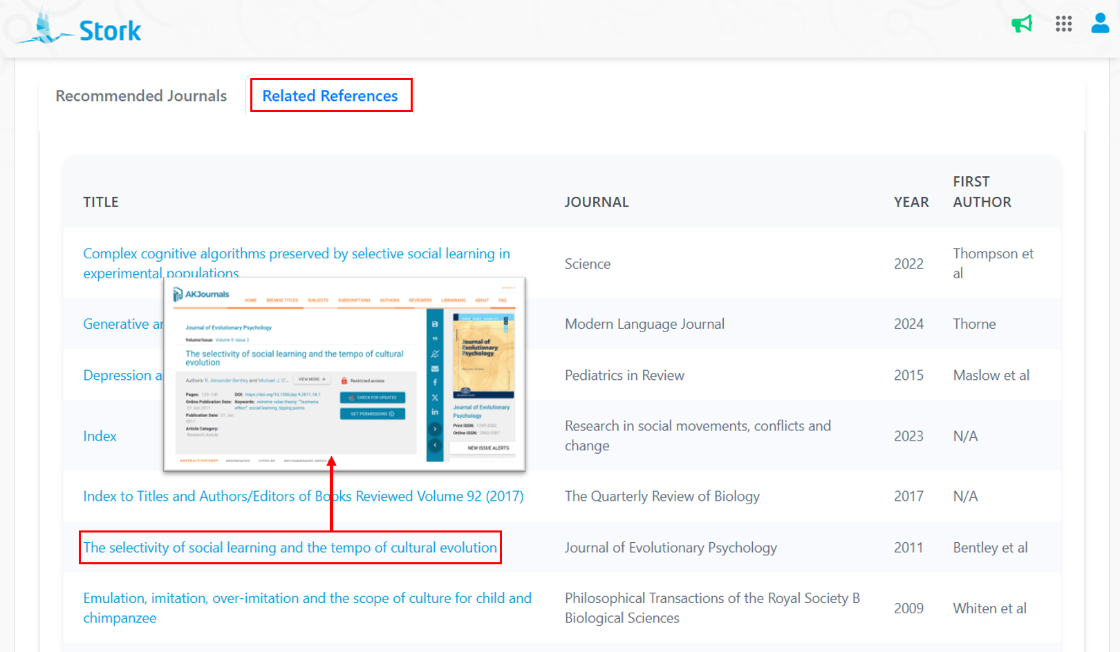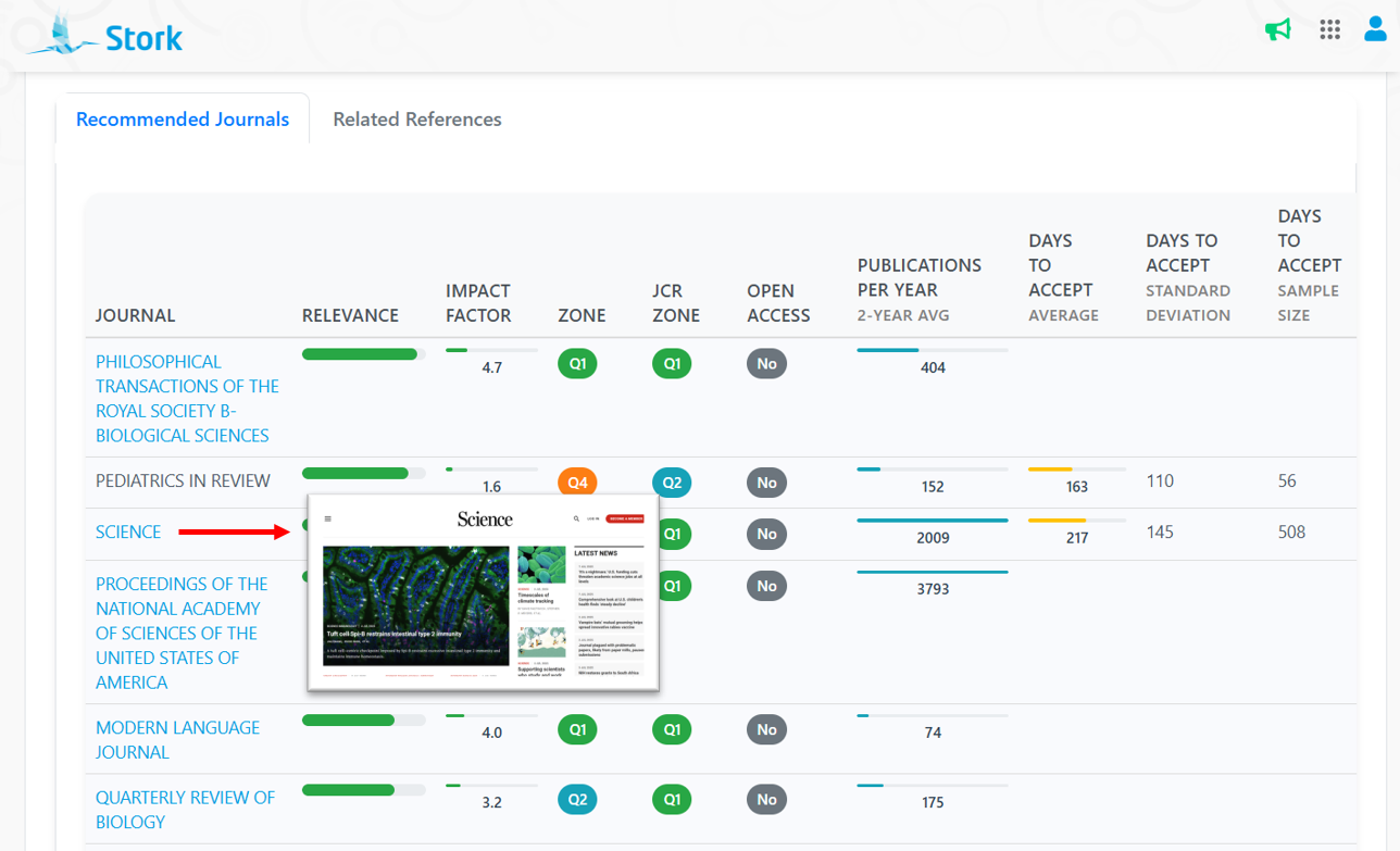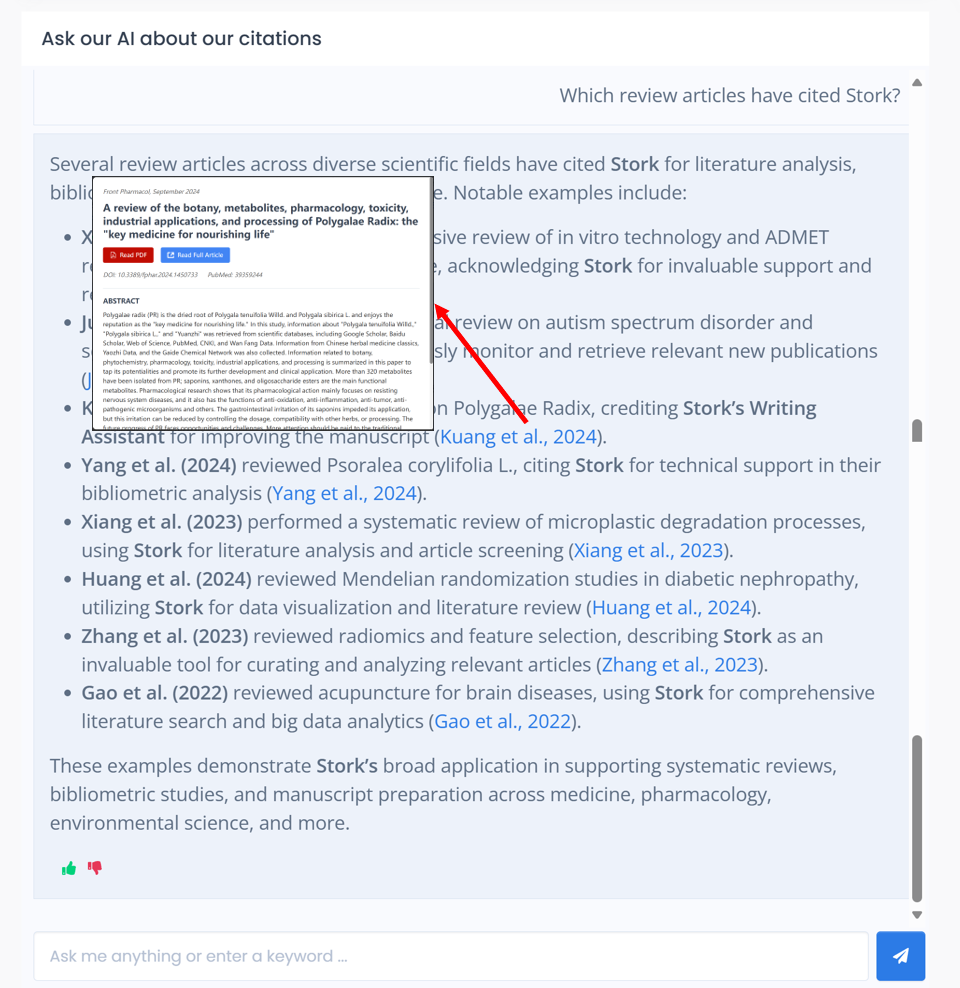 To date, nearly 50 scientific papers have cited Stork. If you cite Stork in your paper, please let us know at support@storkapp.me, and we'll offer you a discount based on the journal's impact factor when you subscribe to Writing Assistant or other advanced features.