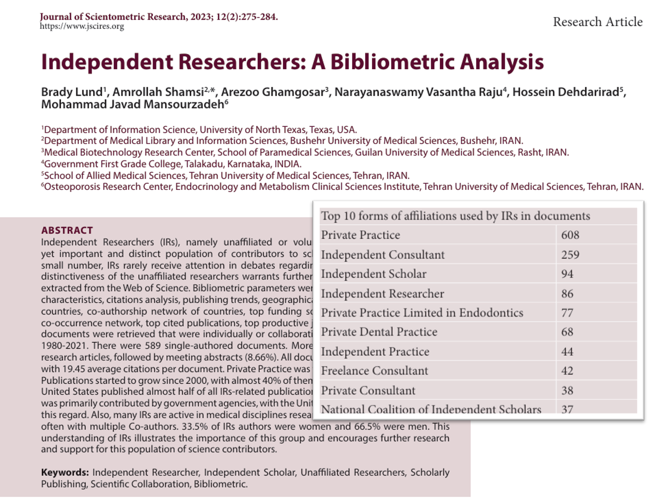 • Will reviewers or editors reject my paper because I have "no institution"?