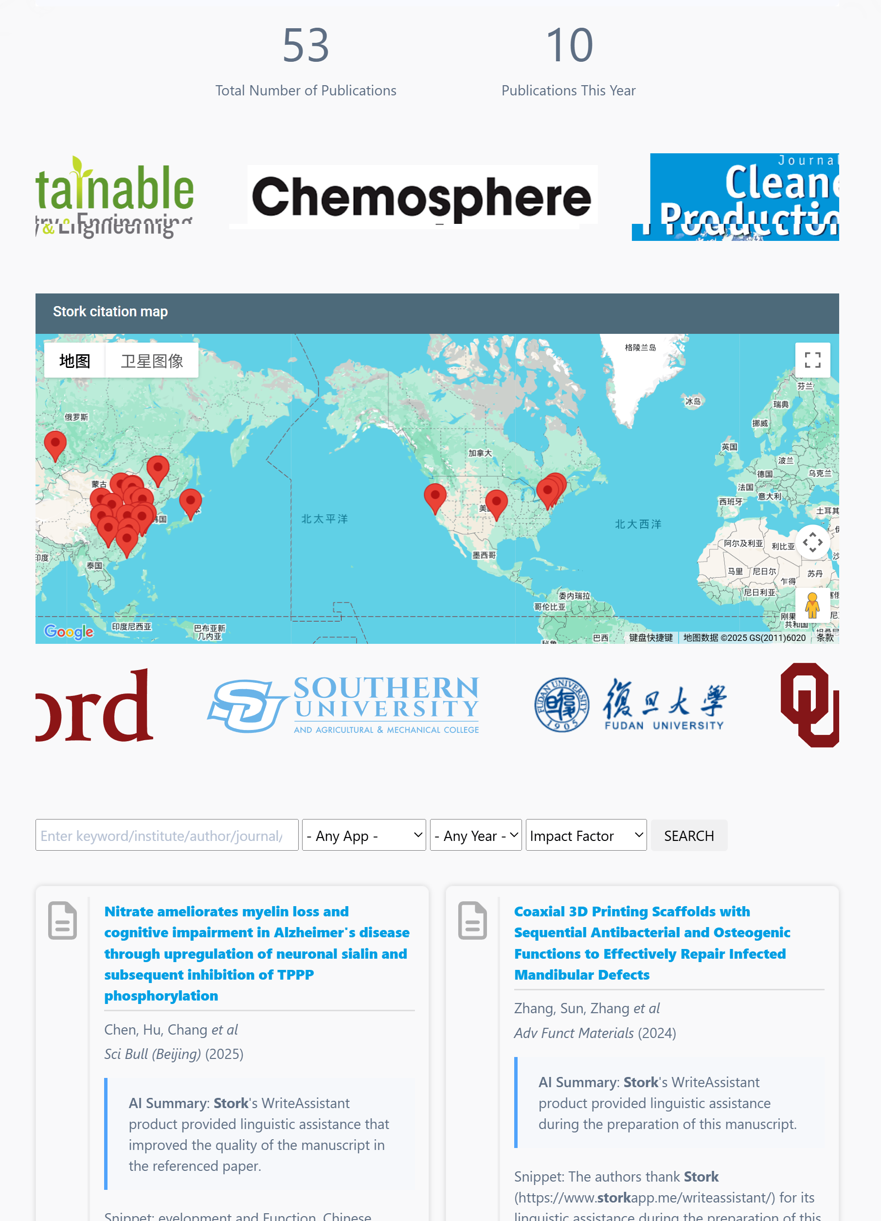 To date,  50 scientific papers have cited Stork. If you cite Stork in your paper, please let us know at support@storkapp.me, and we'll offer you a discount based on the journal's impact factor when you subscribe to Writing Assistant or other advanced features.