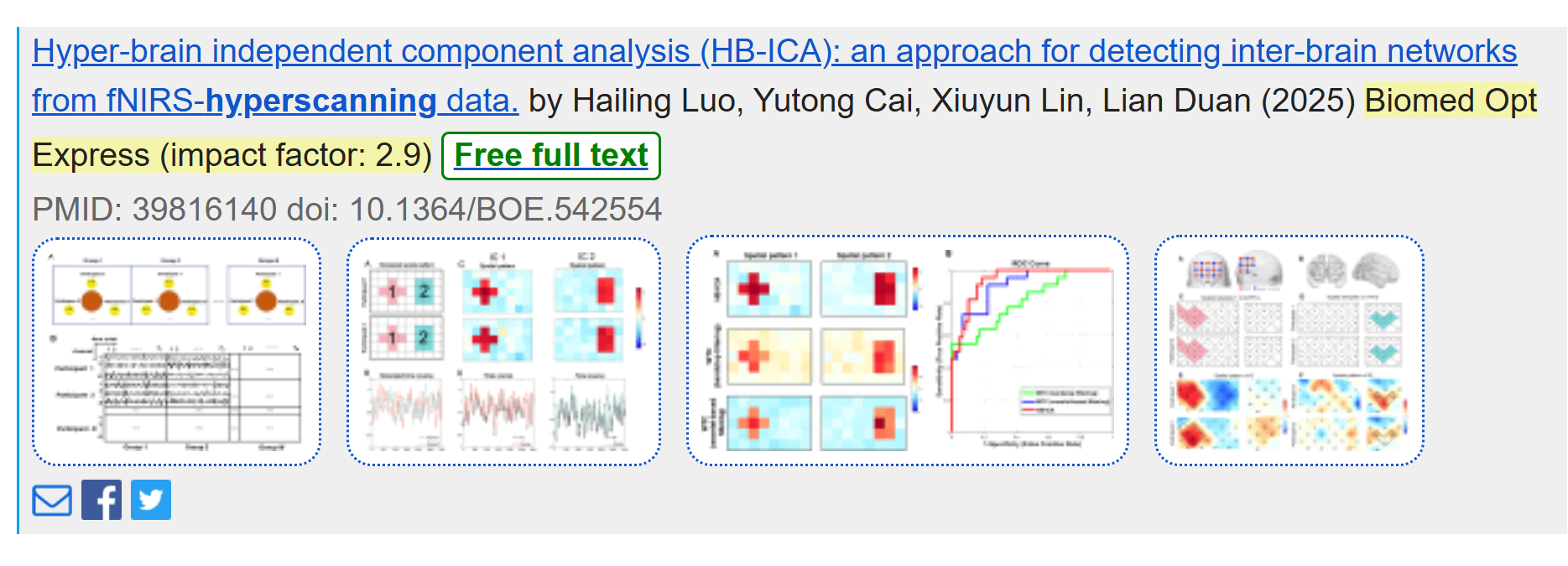 fNIRS hyperscanning is a powerful tool for examining the neural underpinnings of social dynamics. In Neuroimage, Yanmei Wang from East China Normal University demonstrated that positive emotional contagion is associated with increased interpersonal brain synchronization in the mirror neuron and cognitive control systems. Another study in Biological Psychology by Xuhai Chen from Shaanxi Normal University revealed that positive feedback after cooperative failure enhances romantic couples' performance and neural synchrony in the right middle frontal gyrus. Research in the Journal of Neuroscience by Yingjie Liu from North China University of Science and Technology found that interpersonal neural synchrony can predict deception, with friend dyads showing higher synchrony than strangers, especially in reward-processing regions during gain contexts.