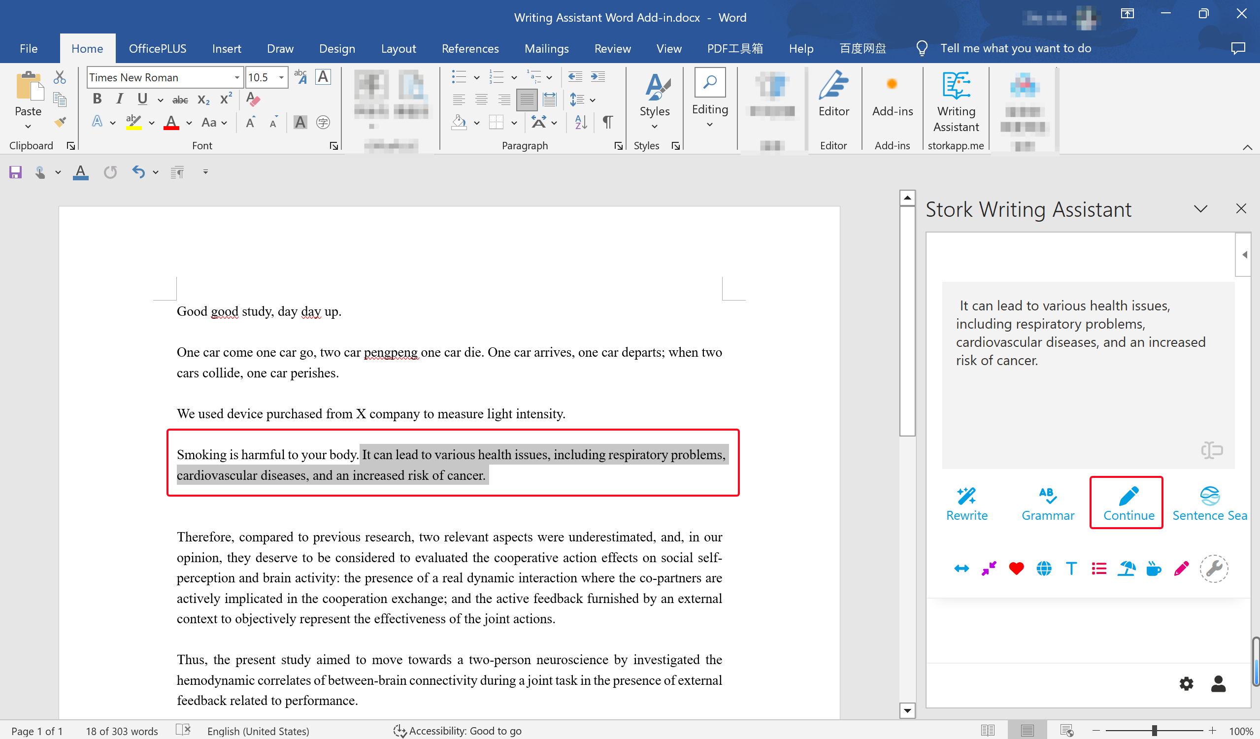 Stork's Writing Assistant can help you with text polishing, grammar correction, and paragraph expansion, while also offering a Word Add-in for a smoother writing experience.