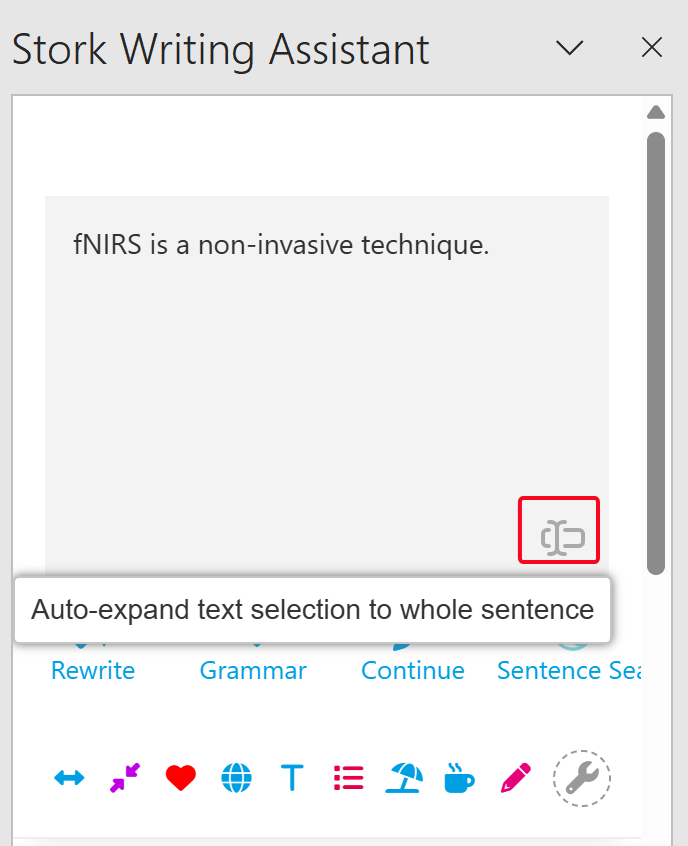 Enable [Auto Expand] to automatically sync the entire sentence into Writing Assistant panel. Disable it to sync only the selected text.