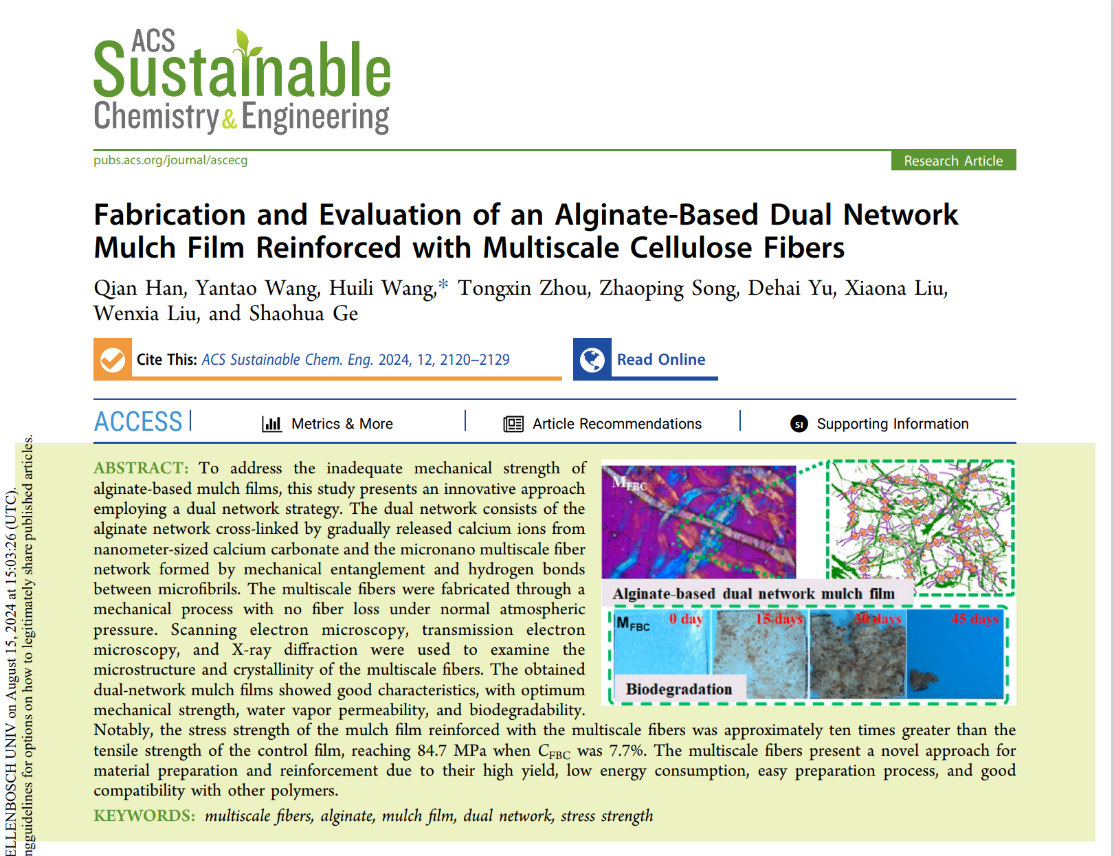 This manuscript published in ACS Sustainable Chemistry and Engineering (Q1, IF=7.1) noted: