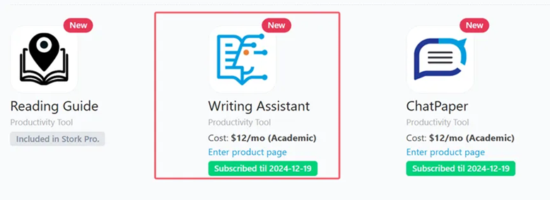 Writing Assistant is an advanced feature offered by Stork (free trial is available). After registering/logging into Stork (https://www.storkapp.me), you can find Writing Assistant under the "Advanced Feature" section. Then you can try it out or subscribe. Alternatively, you can visit Writing Assistant website directly at https://www.storkapp.me/writeassistant/.