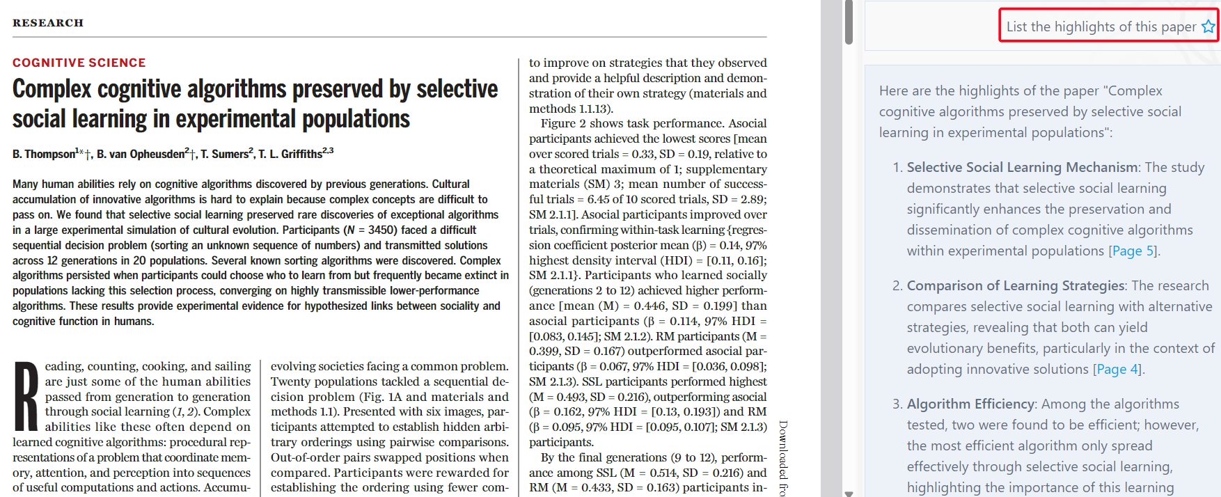 "ChatPaper not only provides explanations for unfamiliar concepts in the papers, but also answers any questions you might have about the article, such as its innovation, methodology, and more. This makes daily literature review both efficient and engaging, akin to having an experienced expert guiding you through the reading process!"