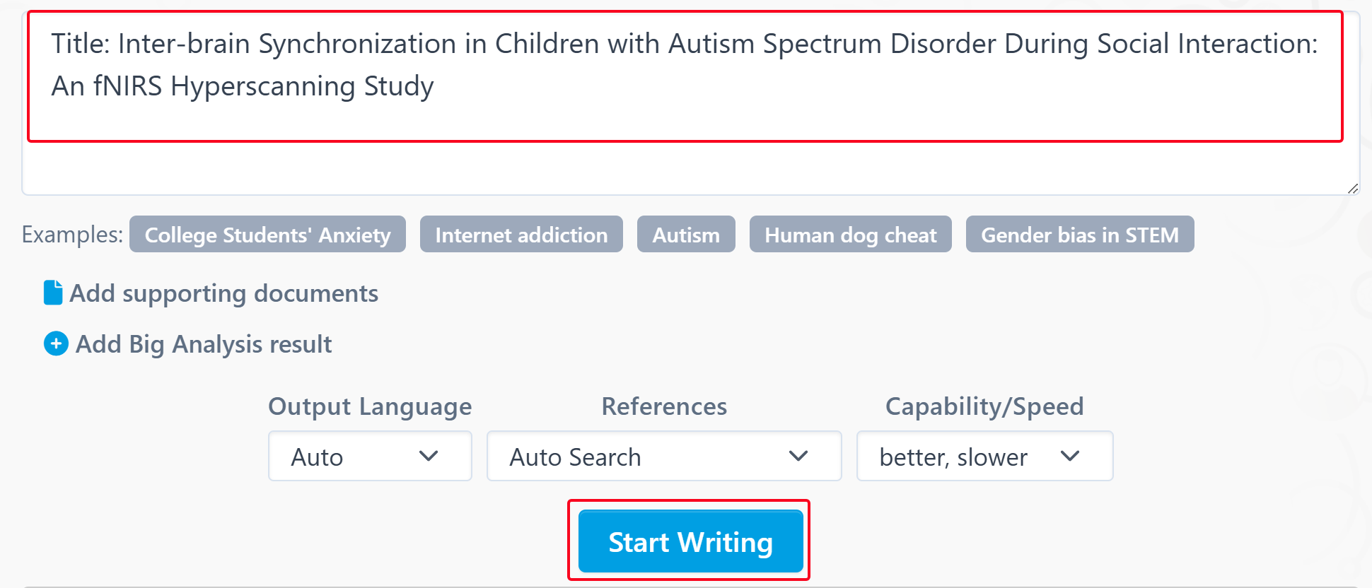 Whether you need write an introduction, a discussion, an abstract or an essay, AI Paper helps generate high-quality content based on your title, keywords or other relevant materials.