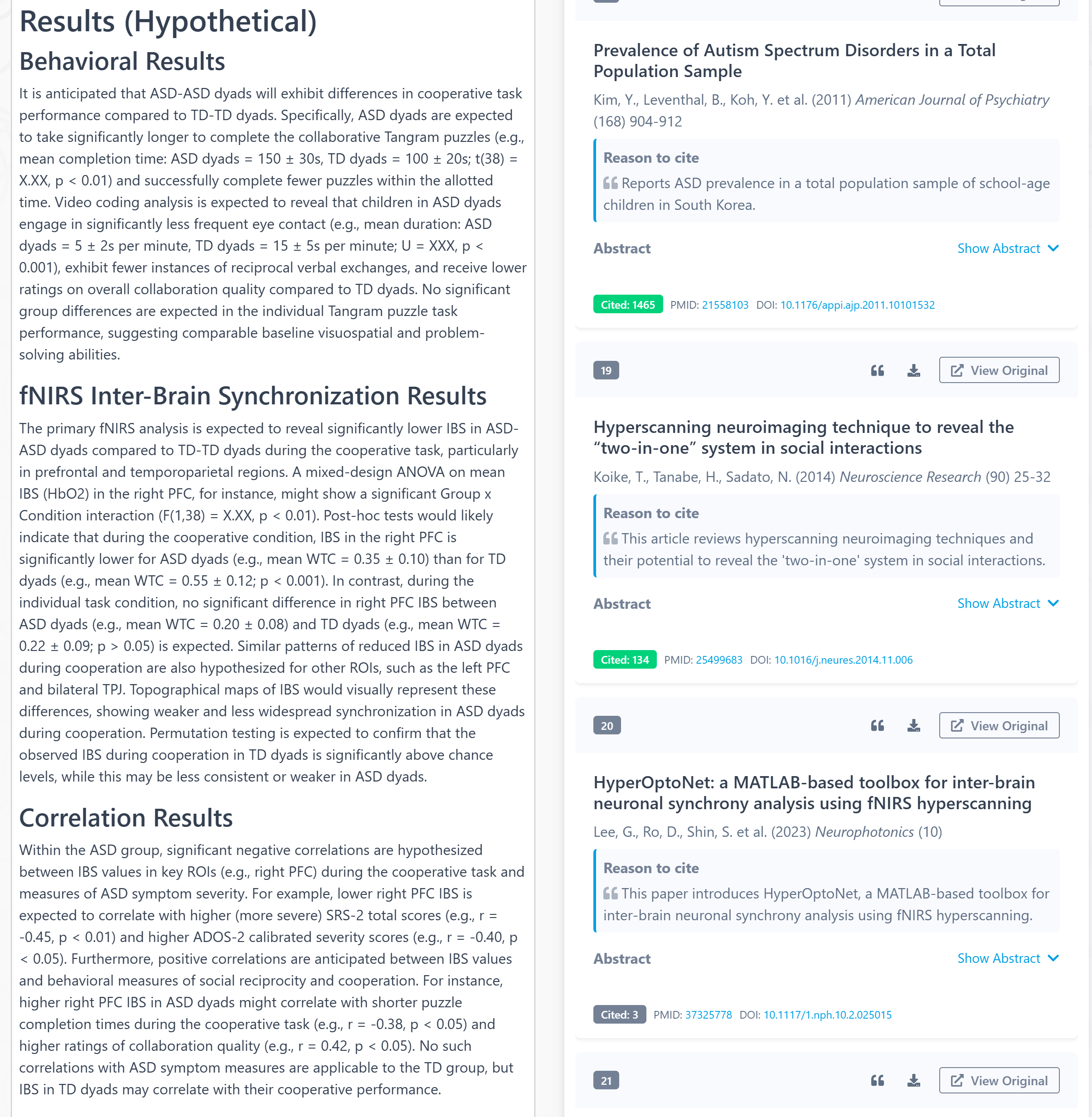 Parts like methods and results are often the easiest to reference. For example, in the participant description, you can use the text generated by AI Paper as-is, simply replacing the numbers with those from your own study.