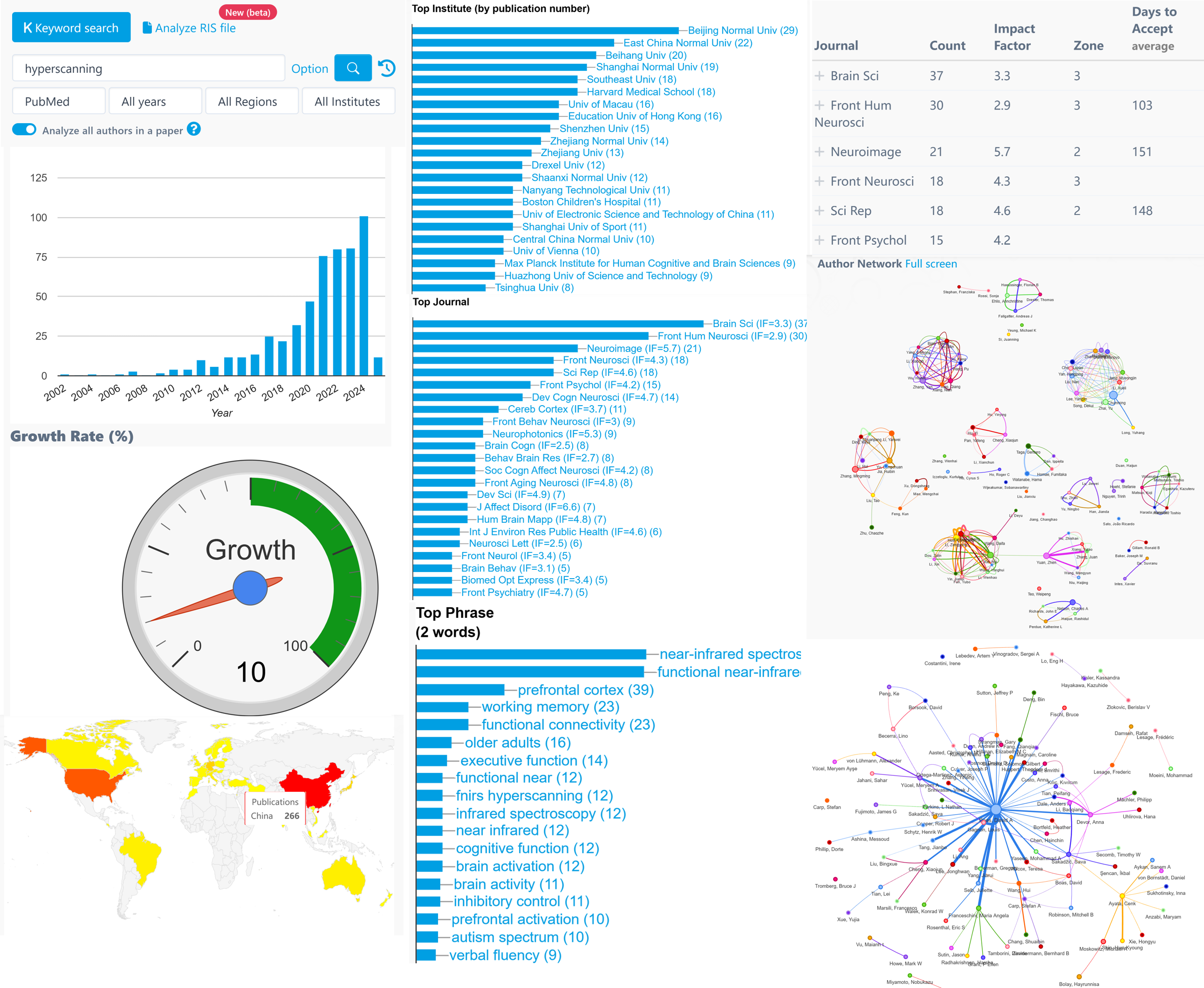• Big Analysis allows a researcher to quickly understand all aspects of a field's progress in a matter of minutes, including growth trends, geographic distribution, experts (and their contact information), genes, diseases, brain regions, etc.