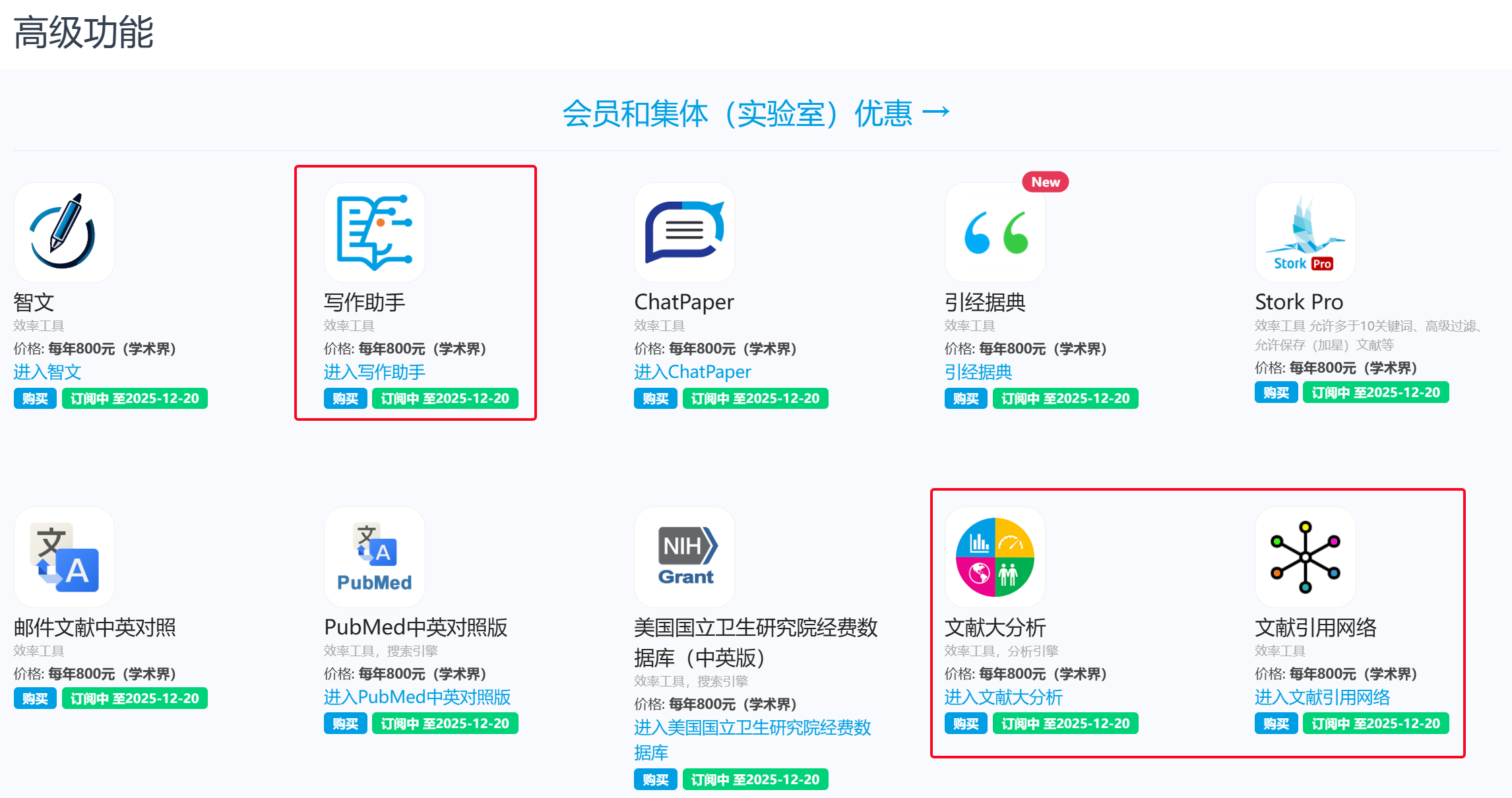 Writing Assistant, Big Analysis, and Citation Network are advanced features offered by Stork (free trial is available). After registering/logging into Stork (https://www.storkapp.me), you can find them under the "Advanced Feature" section. Then you can try it out or subscribe. Alternatively, you can visit Writing Assistant website directly at https://www.storkapp.me/writeassistant/, Big Analysis at  https://www.storkapp.me/meta/, and Citation Network at https://www.storkapp.me/citenet/.